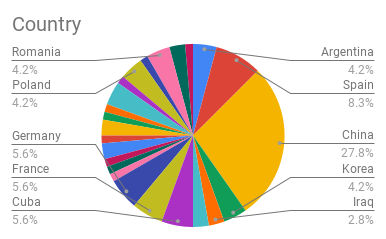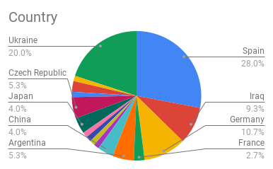 Spanish- 26 (34.7%) (Argentina, Ecuador, Spain)
