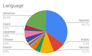 Arabic (1), Chinese (1), Czech (1), Japanese (1), Spanish (2), various (1)