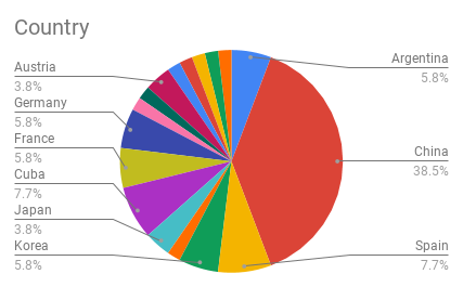 Spanish- 12 (23.1%) (Argentina, Cuba, Mexico, Spain)
