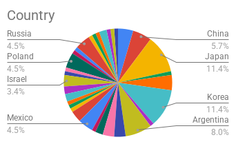 Korea, Japan – 10 (11.4%)