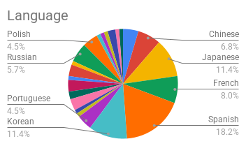 Korean, Japanese – 10 (11.4%)