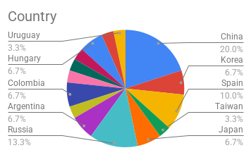 Russia- 4 (13.3%)