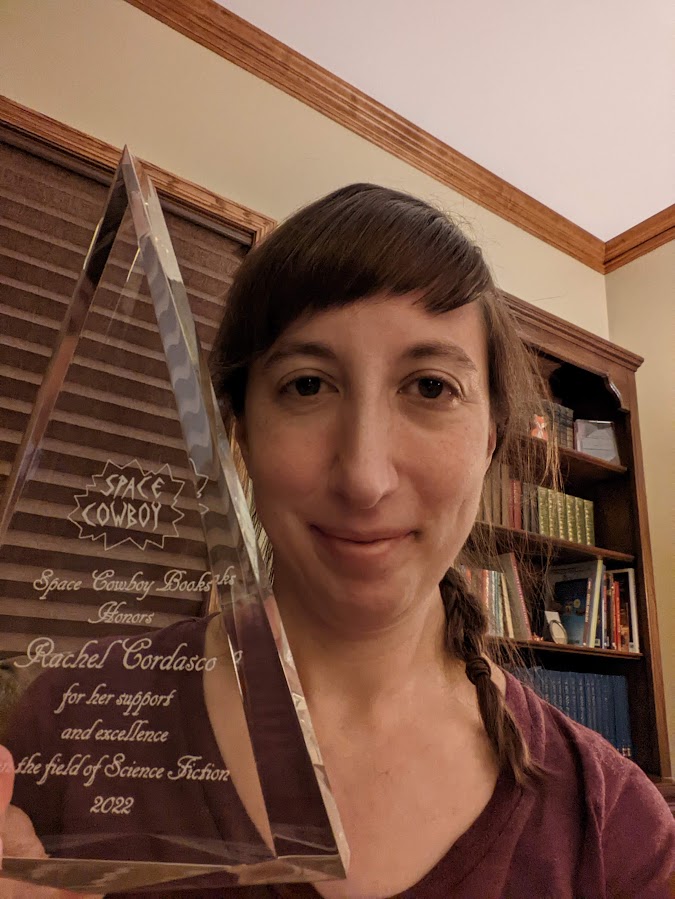 A HUGE thank-you to Space Cowboy Books for honoring me with this year’s Space Cowboy Award! Check out the press release here and go buy a lot of books from them!